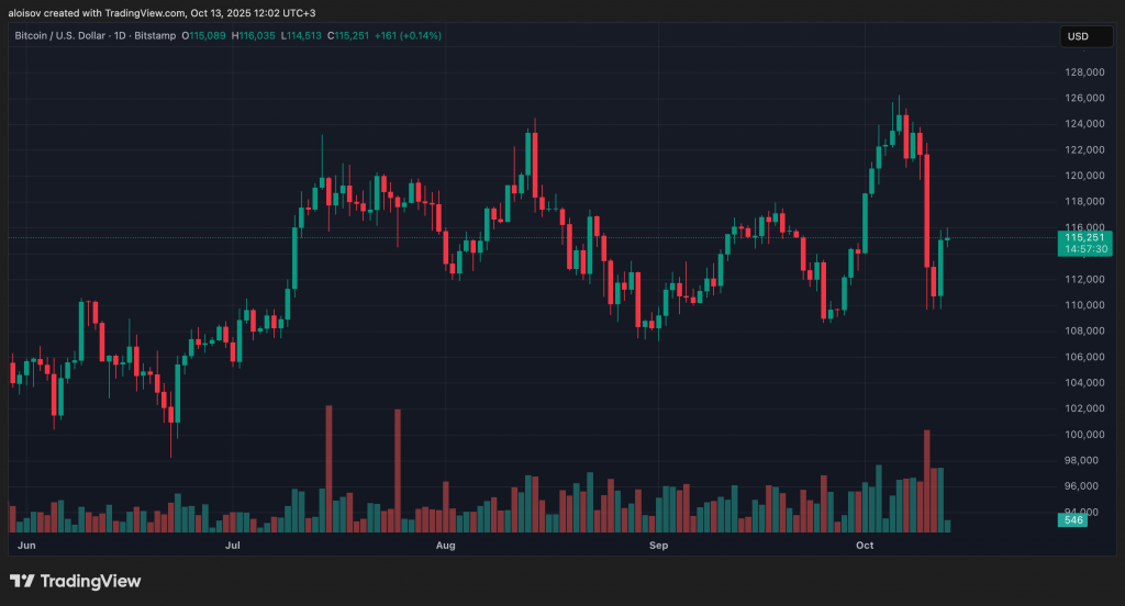 Биткоин вернулся к отметке в $116 000 в начале недели после того, как 10 октября обрушился до $102 173 после объявления Трампом о 100-процентных тарифах в рамках торговой войны между США и Китаем.