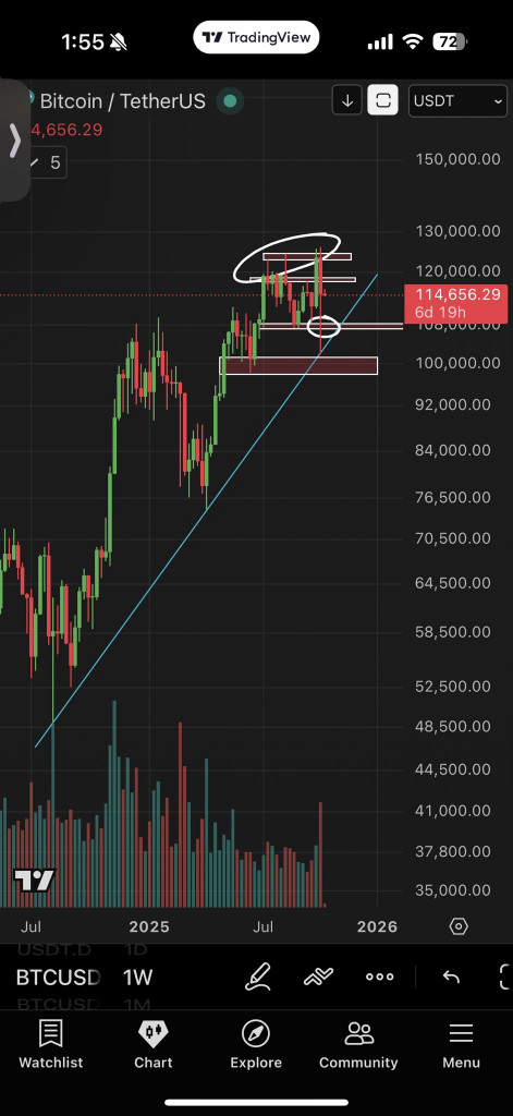 Более оптимистичный взгляд представил трейдер Skew, который заметил, что крупные игроки входят в рынок на фоне возвращения BTC выше $115 000. «Выглядит неплохо, если цена не закроется ниже $112 000 на дневном и недельном графиках», — сказал он, указав ключевую задачу быков — преодоление отметки в $120 000.