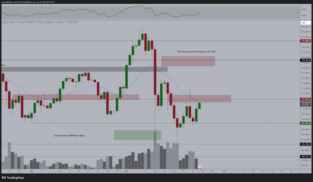 Аналитики сходятся во мнении, что биткоин подошел к решающему моменту. Криптотрейдер Михаэль ван де Поппе (Michaël van de Poppe) называет уровень $112 000 критическим для дальнейшего роста. Этот уровень представляет собой прорыв 20-дневной скользящей средней и горизонтальной зоны сопротивления. По его прогнозу, закрепление выше этой отметки откроет путь к новому историческому максимуму уже в ноябре.