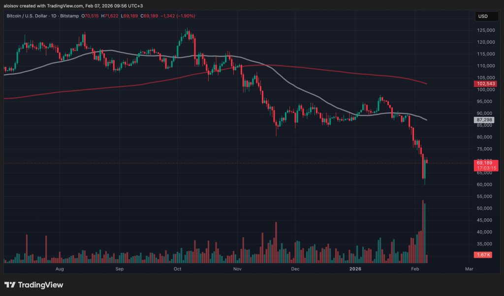 6 февраля биткоин показал первую в истории красную дневную свечу на $10 000. Объем ликвидаций превысил показатели значимых медвежьих событий прошлого, включая обвал на фоне COVID-19 и крах биржи FTX.