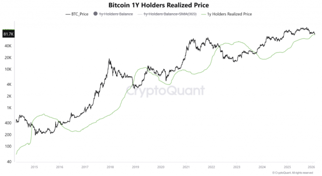 Анализ сетевых данных также указывает на негативные перспективы. С точки зрения аналитической платформы CryptoQuant, тревожным сигналом является падение спотовой цены ниже реализованной цены инвесторов, держащих биткоины от 12 до 18 месяцев.