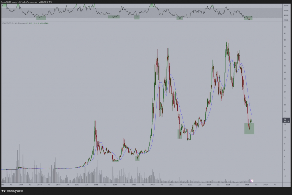 По его оценке, в течение ближайших трех месяцев цена может достичь диапазона $87 500–90 000 при сохранении текущей структуры рынка. Он также обращает внимание на соотношение BTC/XAU, которое указывает на постепенное усиление позиций биткоина относительно золота.