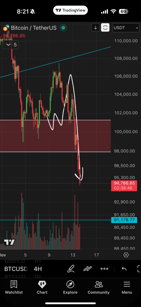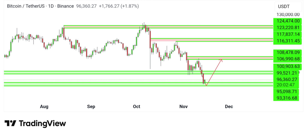 Аналитик Crypto Candy отмечает, что биткоин движется в соответствии с ожиданиями. Криптовалюта достигла ключевой зоны $93 000-95 000 и теперь пытается отскочить от этого уровня. Если восстановление продолжится, цена может подняться до $99 000-101 000 или выше в ближайшие дни. Эта оценка остается актуальной при условии сохранения зоны $93 000-95 000.