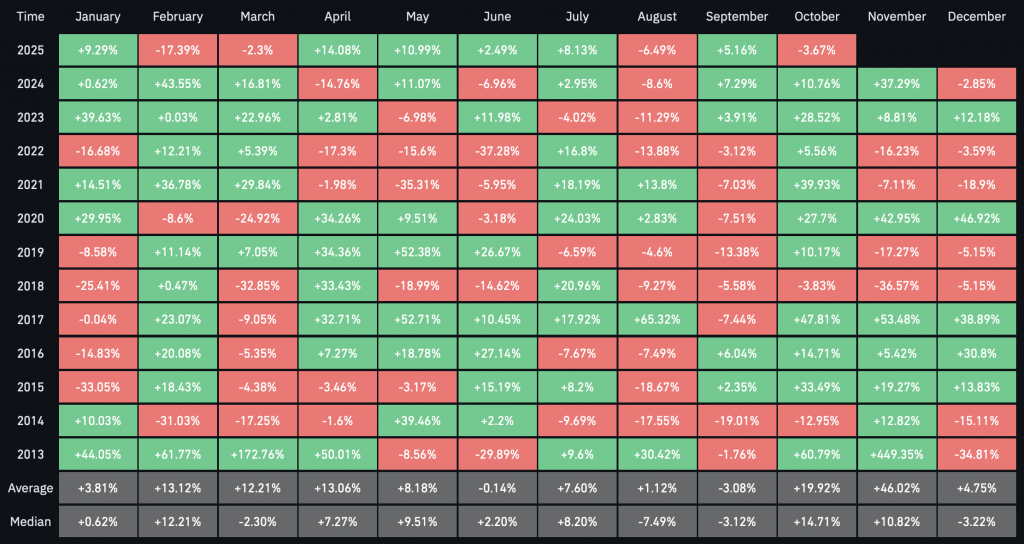 CoinGlass подтвердил, что октябрь стал «красным» для биткоина впервые с 2018 года, при этом остался лишь один торговый день, чтобы изменить ситуацию. Cредний рост в октябре с 2013 года составлял 20%.