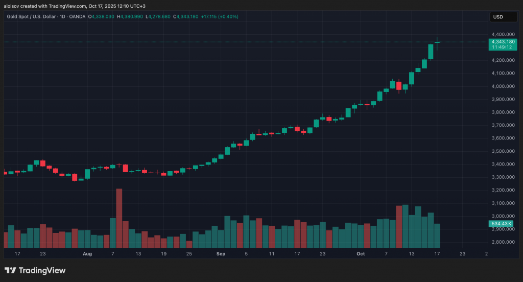 Золото, в отличие от биткоина, устояло перед банковскими проблемами и даже установило новый исторический максимум на уровне $4 380.