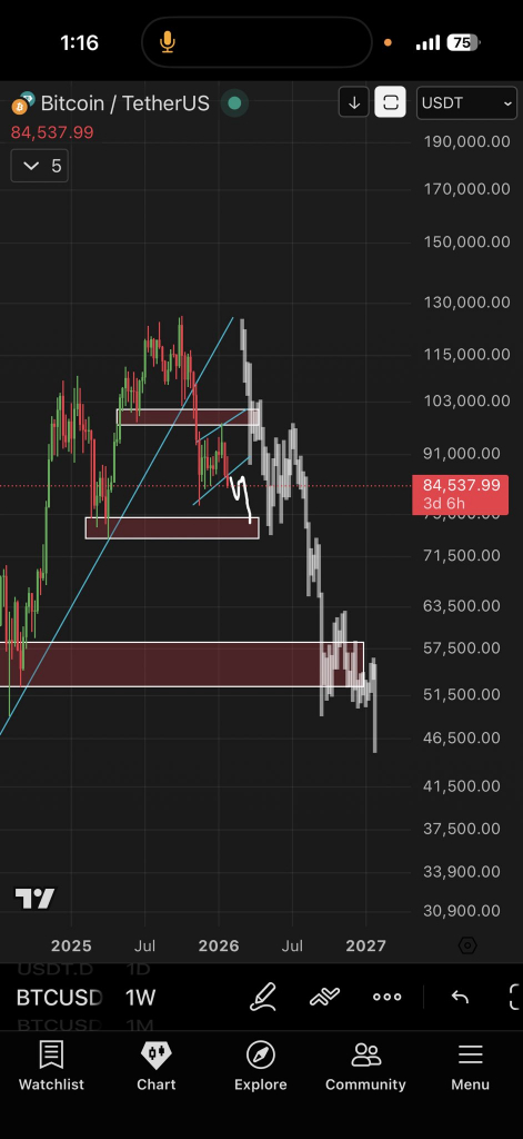 Трейдер Roman планирует дождаться уровня $50 000–60 000, отмечая, что текущая динамика повторяет падение 2022 года. Он планирует накапливать позиции после крупного каскада ликвидаций и когда постоянные оптимисты начнут открывать короткие позиции.