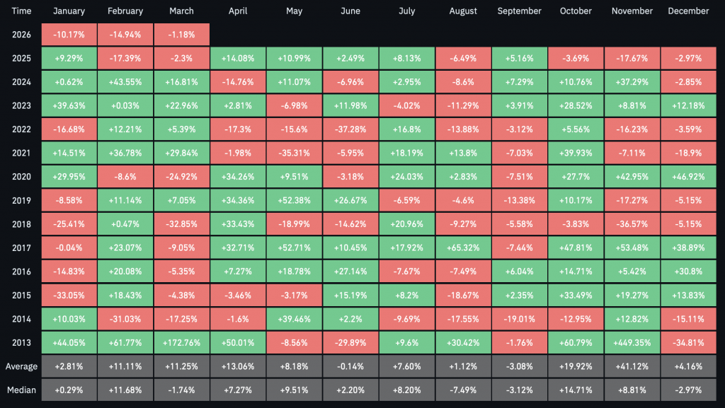По сравнению с локальным пиком 17 марта, цена актива снизилась на 13% и достигла $65 505 по данным биржи Bitstamp. При этом март рискует стать шестым подряд красным месяцем — подобного не случалось со времен медвежьего рынка 2018 года.