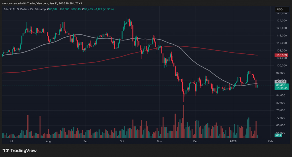 Биткоин опустился ниже отметки $88 000 на бирже Bitstamp 20 января, зафиксировав падение на 10% от локального максимума 14 января. За последние сутки основная криптовалюта подешевела на 5%, что заставило аналитиков пересмотреть свои краткосрочные прогнозы.