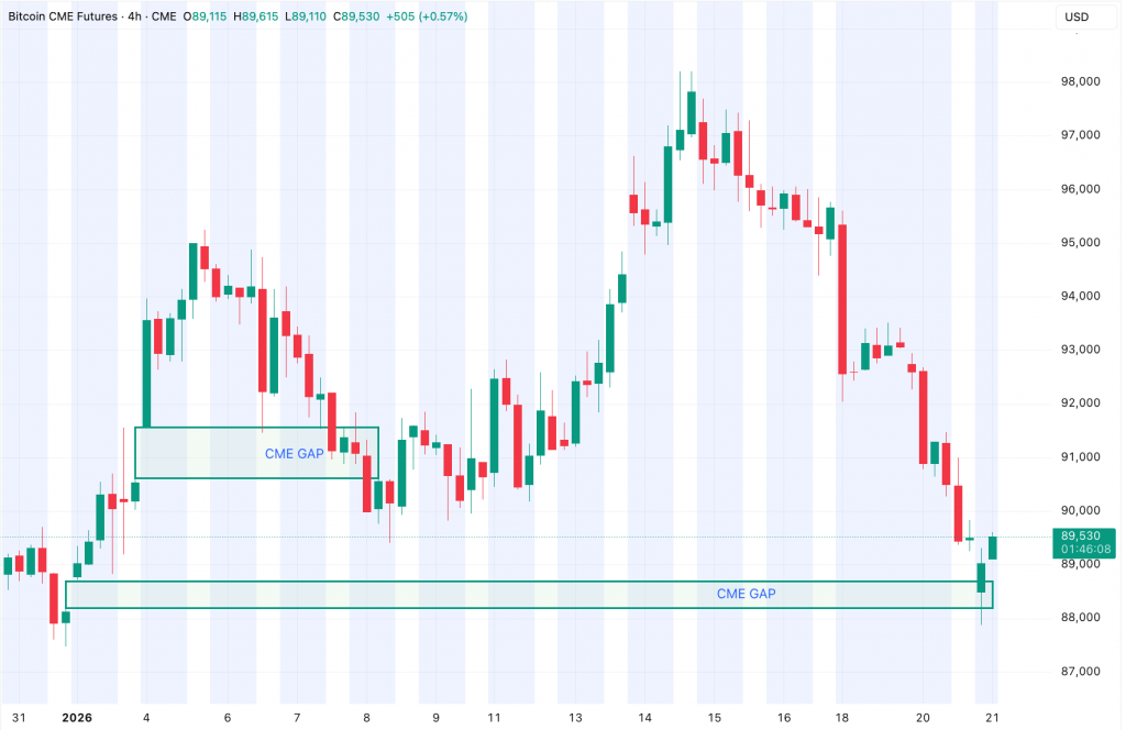 Информационный аккаунт Coin Bureau обратил внимание на техническое событие — закрытие давнего гэпа Чикагской товарной биржи (CME). Откат биткоина к $88 000 официально заполнил этот разрыв в ценах.