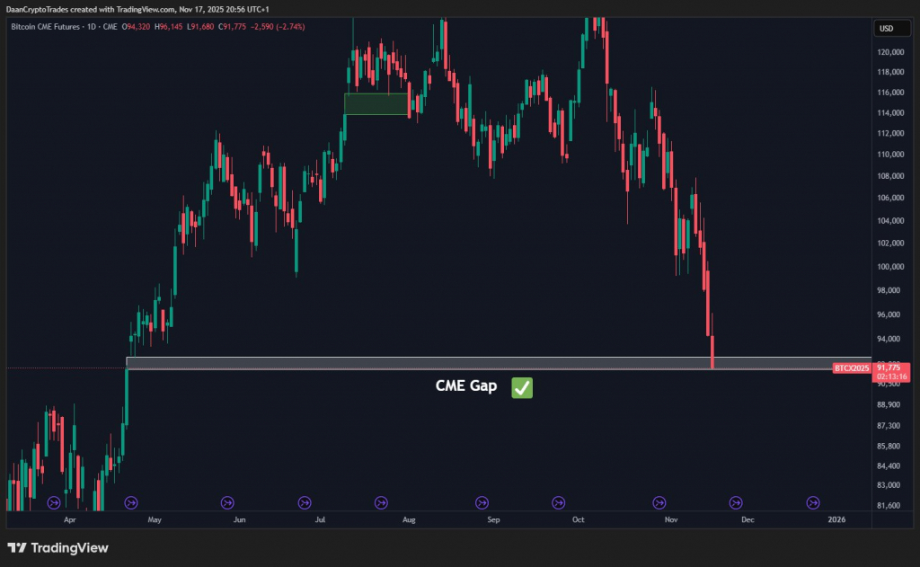 Трейдер Daan Crypto Trades зафиксировал закрытие последнего крупного гэпа Чикагской товарной биржи (CME), что многие участники рынка рассматривали как важный технический уровень.