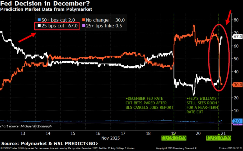 Вероятность снижения процентной ставки Федеральной резервной системой в декабре упала до 30% на прошлой неделе, но сейчас вернулась к 70%, сообщил Эдвардс.