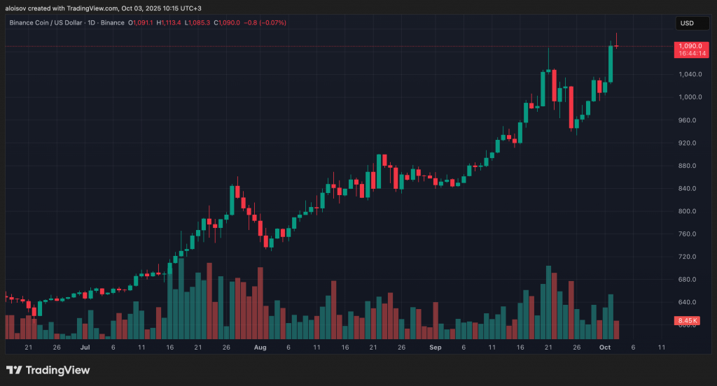 BNB, нативный токен блокчейна первого уровня, созданного криптобиржей Binance, установил новый исторический максимум — $1 113. За ростом стоят конкретные причины: планы по обновлениям сети и общий подъем на рынке.