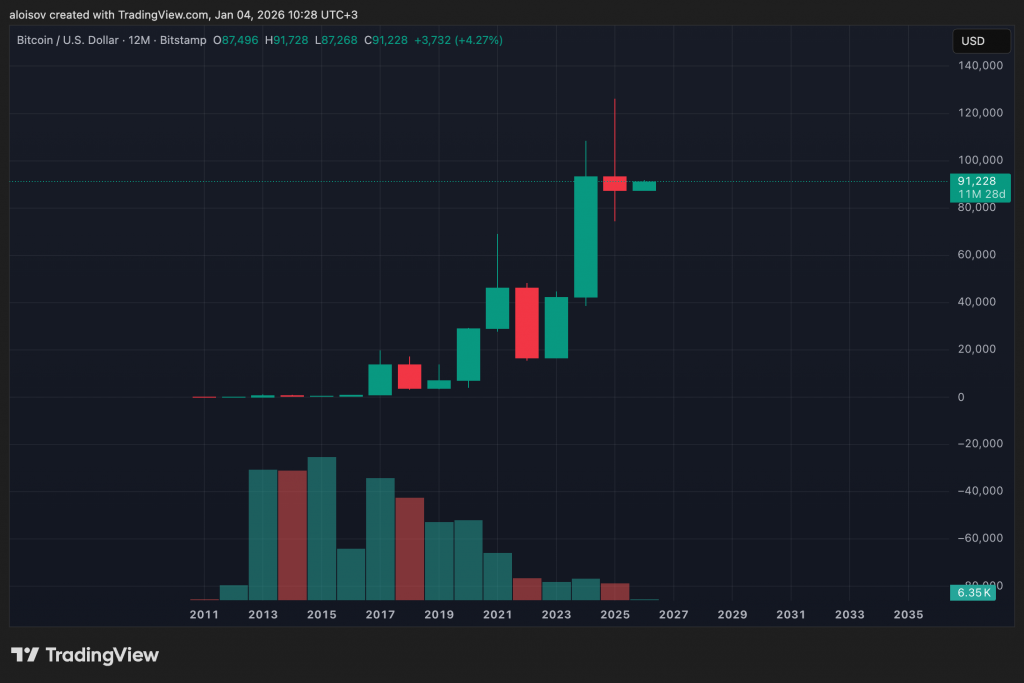 Биткоин впервые за историю завершил год после халвинга в убытке, нарушив священный четырехлетний цикл, который существовал более десятилетия. Это событие стало символом кардинальной трансформации криптовалютного рынка, где институциональные игроки и макроэкономические факторы теперь важнее технических закономерностей блокчейна.