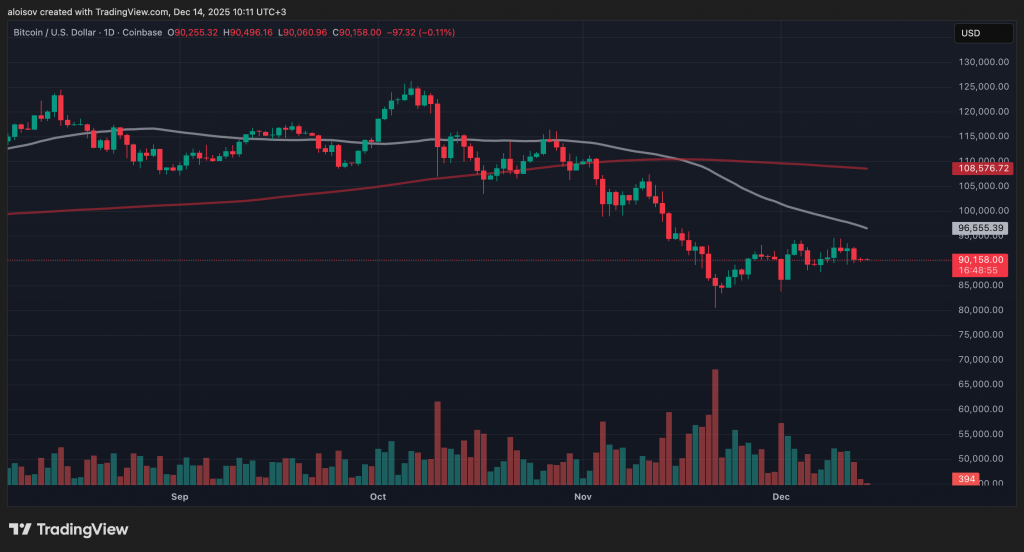 Третье подряд снижение ставки на четверть пункта должно было поддержать рисковые активы, но председатель Джером Пауэлл (Jerome Powell) дал понять, что в 2026 году темпы смягчения политики замедлятся. Биткоин потерял 5,4%, опустившись с $94 640 до $89 418, хотя некоторые аналитики видят в коррекции здоровую консолидацию перед новым ралли. Strategy воспользовалась снижением для увеличения резервов, купив еще 10 624 биткоина за $962,7 млн и доведя общие накопления до 660 624 биткоинов стоимостью $49,35 млрд. Глава компании Майкл Сейлор предложил национальным государствам создавать банковские системы с обеспечением биткоином, способные привлечь триллионы долларов депозитов. QCP Capital предупреждает о росте волатильности в преддверии праздничного сезона, отмечая резкие движения при низкой ликвидности. Прогнозы аналитиков варьируются от падения до $76 000 до роста к $780 000, что демонстрирует высокую неопределенность рынка.