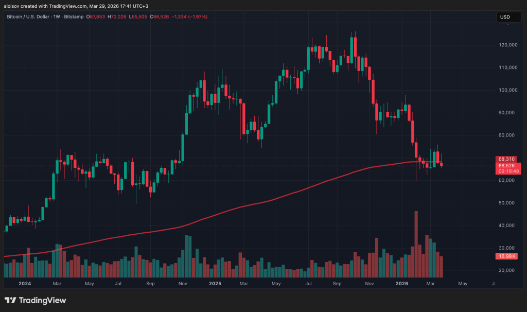 К 27 марта биткоин опустился ниже $66 000, и уровень $70 000 превратился из поддержки в сопротивление. Основатель The Kobeissi Letter Адам Кобейси (Adam Kobeissi) указал: за менее чем месяц рыночный консенсус сместился от ожиданий снижения ставки к разговорам о возможном повышении — базовый сценарий теперь предполагает паузу регулятора на ближайшие 18 месяцев. Март рискует стать шестым подряд красным месяцем: такого не случалось со времен медвежьего рынка 2018 года.