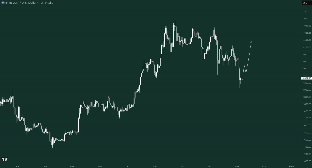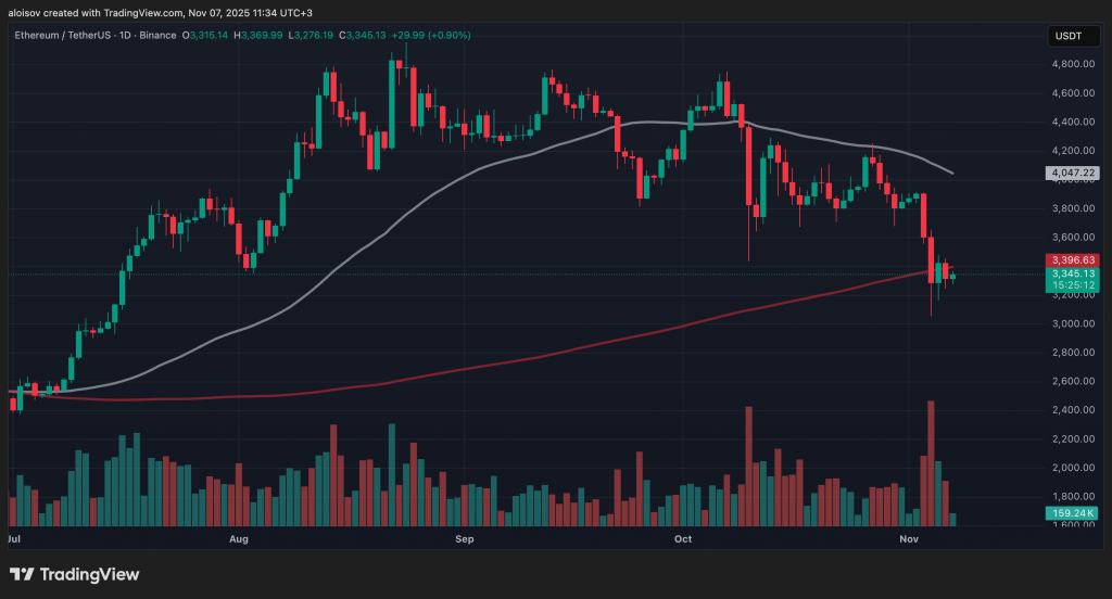 За последние семь дней Ethereum потерял 13% своей стоимости, опустившись 4 ноября до минимума в $3 057.