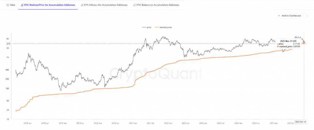 Если ETH упадет ниже $2 900, то вряд ли там задержится надолго. Исторически эта цена представляла «одну из лучших возможностей для долгосрочного накопления».