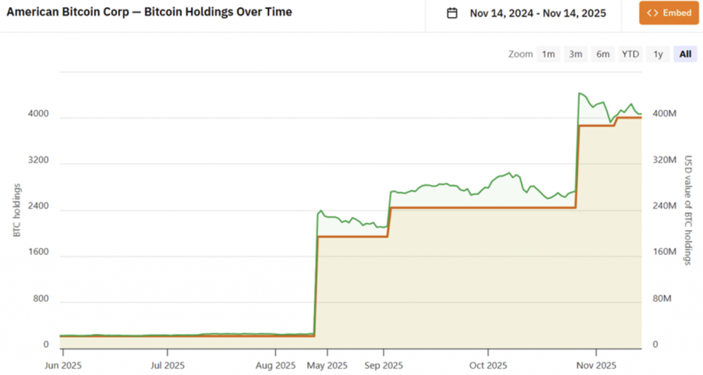 Трамп не ограничивается словами и активно воплощает свою философию на практике. Его компания American Bitcoin, которая стала публичной в этом году через обратное слияние с Gryphon Digital Mining, добавила более 3 000 BTC в третьем квартале. Биткоин-резерв компании превысил 4 000 монет.
