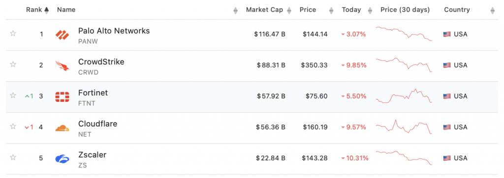 Сильнее всего пострадала CrowdStrike, специализирующаяся на кибербезопасности: ее акции упали на 18% с момента запуска, а рыночная капитализация сократилась на $20 млрд. Palo Alto Networks — крупнейшая американская компания сегмента с капитализацией $116 млрд — потеряла около 9% по бумагам PANW. Fortinet зафиксировала аналогичное снижение котировок FTNT. Cloudflare и Zscaler также оказались под давлением.