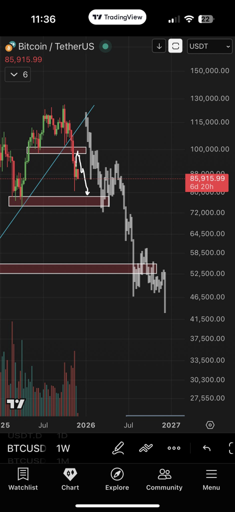 Ликвидации превысили $600 млн за сутки, когда биткоин тестировал уровень $85 616 на Bitstamp. Трейдер Roman назвал возврат к $50 000 «неизбежным».