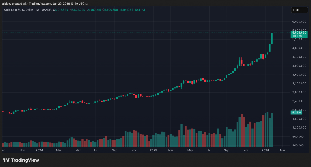 Золото продолжает обновлять исторические максимумы, достигнув уровня свыше $5 500 за унцию, что отражает растущий интерес институциональных инвесторов к защитным активам. Всемирный совет по золоту прогнозирует сохранение активных закупок в 2026 году на уровне 750-900 тонн, в зависимости от макроэкономических и политических факторов.