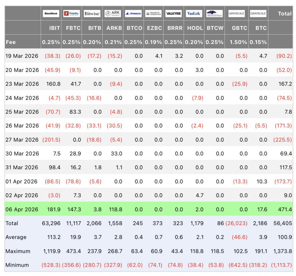 Приток капитала в биткоин-ETF достиг $471 млн 6 апреля — это самый высокий показатель с февраля и прямое указание на возвращение институционального интереса к активу.