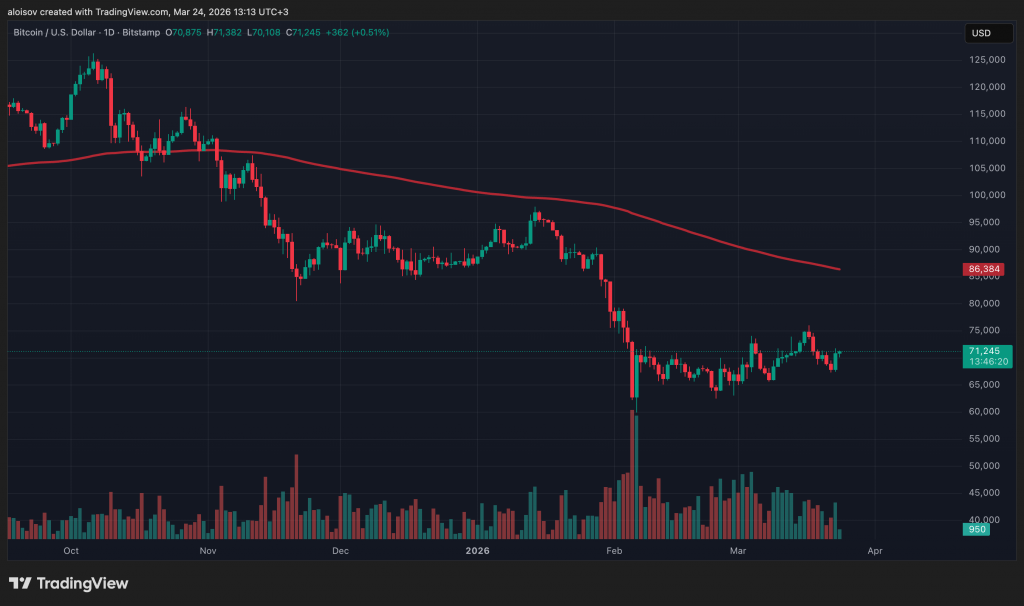 На этом фоне крипторынок проявил неожиданную устойчивость. Биткоин в выходные опускался ниже $70 000, однако просадка оказалась куда скромнее, чем в прошлых эпизодах бегства от риска — особенно в условиях тонкой выходной ликвидности, когда подобные события прежде приводили к резкому падению.
