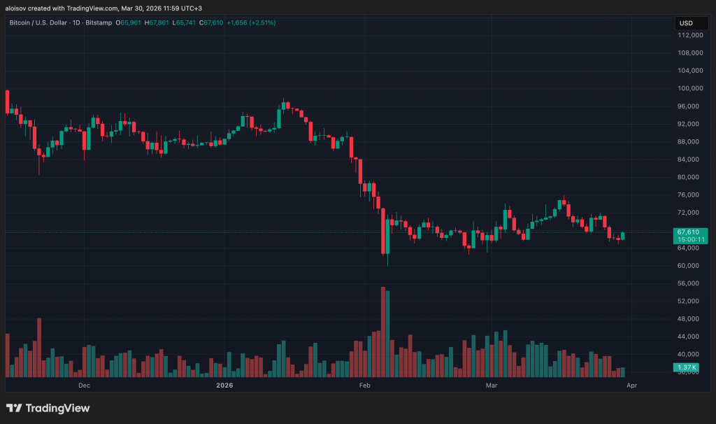 Тем не менее для возобновления восходящего тренда рынку потребуется нечто большее, чем инерция. После распродажи 27 марта по итогам квартальной экспирации настроения остаются осторожными, а неурегулированный конфликт с Ираном лишь усиливает давление. По итогам текущего месяца биткоин рискует зафиксировать шестой подряд «красный» месяц и первую трехмесячную серию потерь с начала года — красноречивое свидетельство рыночных настроений.