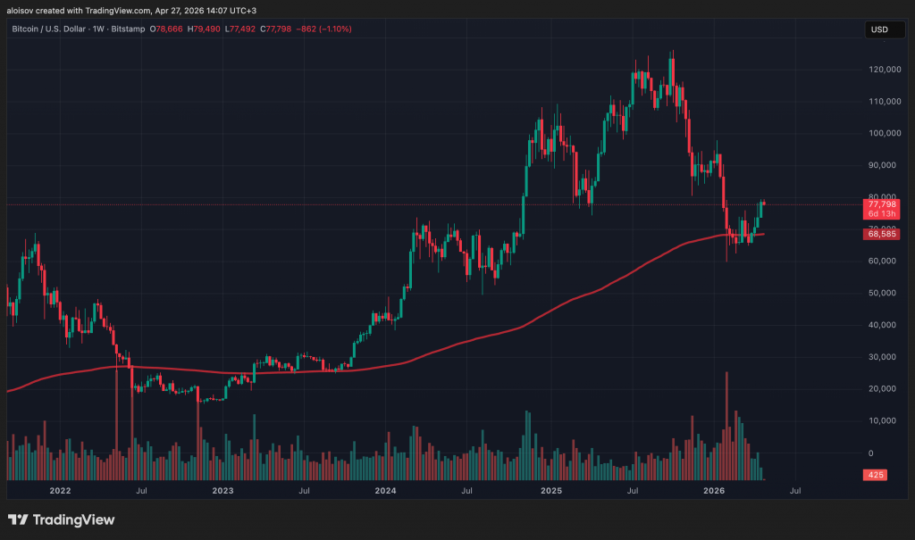 Несмотря на геополитический шум, биткоин прибавил более 14% за месяц — четыре недели роста подряд, что вписывается в исторически сильную апрельскую сезонность. Восстановление опирается на конкретные цифры: девять сессий подряд с притоком средств в спотовые биткоин-ETF суммарно принесли около $2,11 млрд. Параллельно компания Strategy (бывшая MicroStrategy) докупила биткоин на сумму более $3,8 млрд только за апрель.