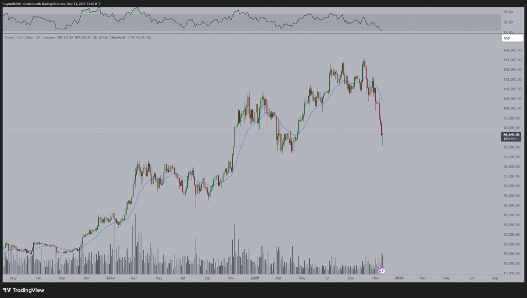 А Михаэль ван де Поппе (Michaël van de Poppe), криптотрейдер и аналитик, вообще назвал последнюю трехдневную свечу биткоина «отличной». Такие формации обычно появляются в районе дна рынка. «Учитывая, что текущие настроения и индикаторы перепроданы сильнее, чем во время краха FTX, я не удивлюсь, если BTC будет торговаться в диапазоне $90 000-96 000 на следующей неделе», — сообщил он своим подписчиками в соцсети X.