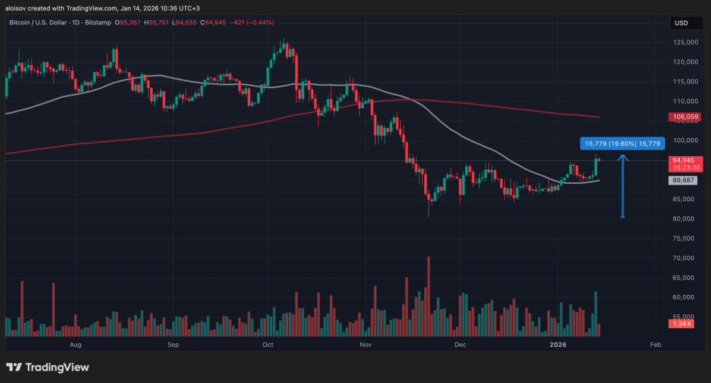 На фоне ожидания важного решения биткоин демонстрирует умеренный рост. 13 января первая криптовалюта поднялась до $96 474 на бирже Bitstamp, что на 19,6% выше минимума от 21 ноября.
